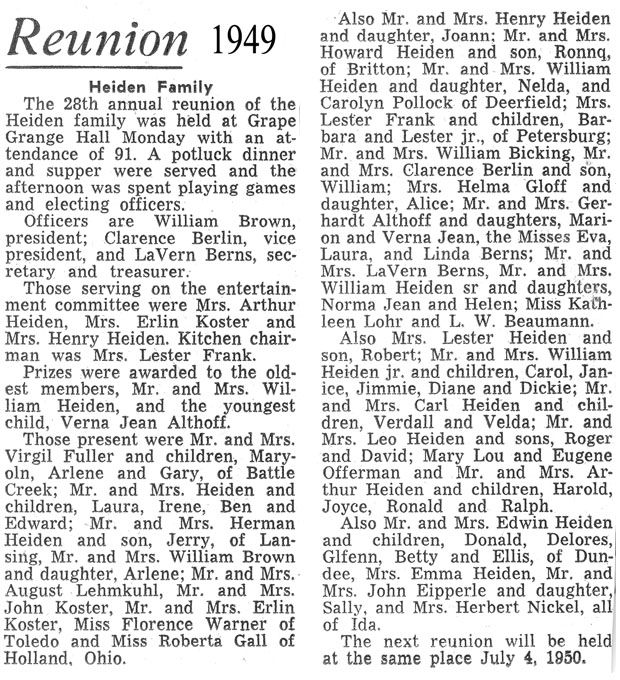 The 28th annual reunion of the Heiden