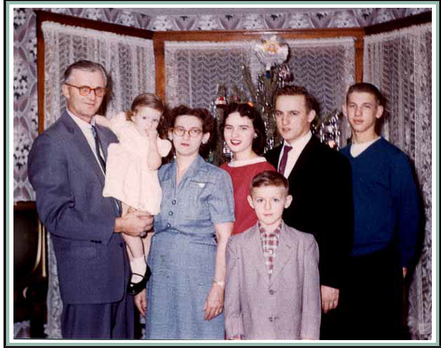 Road about Christmas 1955. Left to Right: Art (43), Kay (2), Mildred (41),