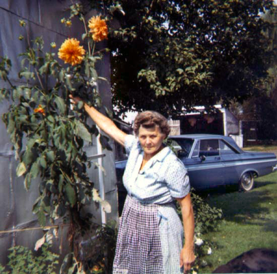 with her giant dahlias in 1966.
