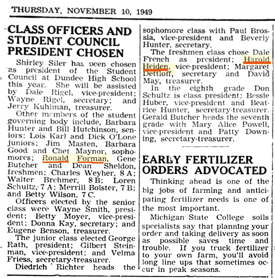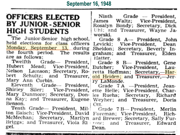 Looks as if my brother, Harold, was elected 8th Grade Secretary on the day that I was born.
