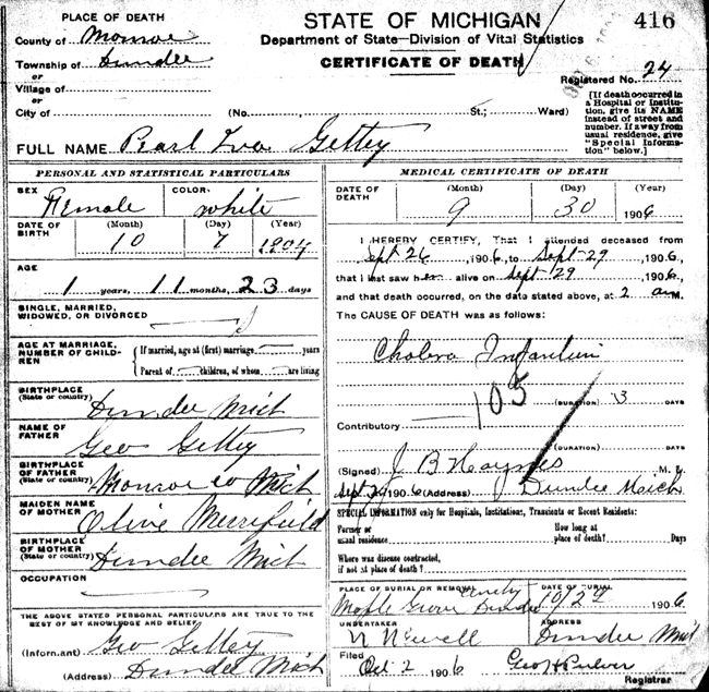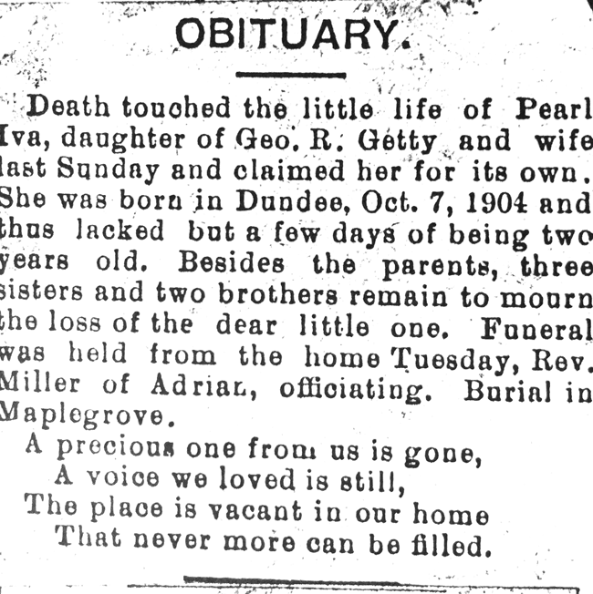 Pearl would have been a first cousin, once removed of Mildred Heiden on the Getty branch of the family. Pearl and Mildred's mother,