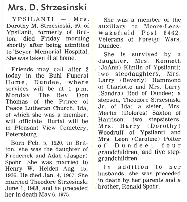 Theodore Strzesinski, Sr. had two wives named Dorothy Heiden. His first