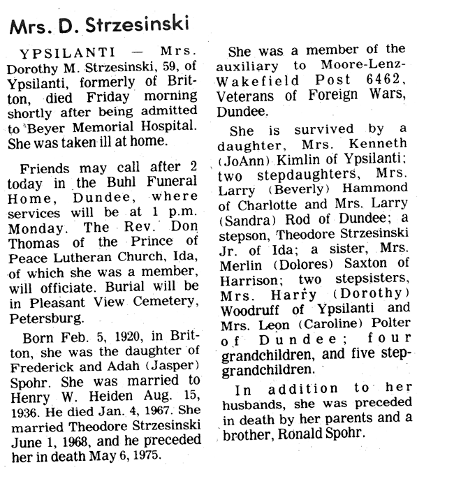 Theodore Strzesinski, Sr. had two wives named Dorothy Heiden. His first
