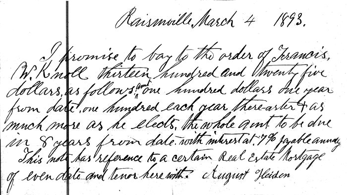I promise to pay to the order of Francis W. Knoll thirteen hundred